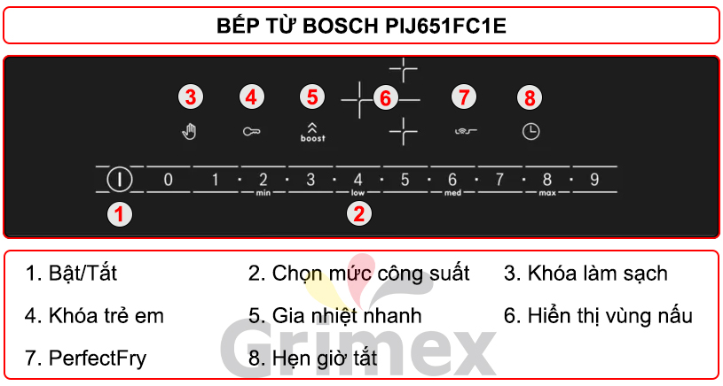 Bếp từ Bosch PIJ651FC1E serie 6 có 3 vùng nấu - Hiện đại và tiện ích cho không gian bếp của bạn. Với công nghệ nấu nhanh và chính xác, 4 vùng nấu linh hoạt và điều khiển cảm ứng dễ sử dụng, bếp từ này mang lại trải nghiệm nấu nướng tuyệt vời. Chức năng Boost giúp nấu nhanh hơn, trong khi bề mặt kính dễ vệ sinh và bền bỉ. Khám phá ngay bếp từ Bosch PIJ651FC1E để thêm sự tiện lợi và sang trọng vào không gian bếp của bạn.