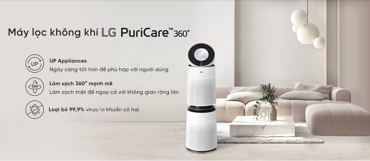 🌟 Chế độ làm sạch 360º: Máy lọc không khí 2 tầng LG Puricare 360˚ Plus AS303DWFA đã được cải tiến mạnh mẽ, có khả năng làm sạch không gian 360 độ.