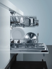 - Hệ thống rackMatic: Cho phép điều chỉnh độ cao của khay trên 3 mức, phù hợp với nhiều kích cỡ chén bát.