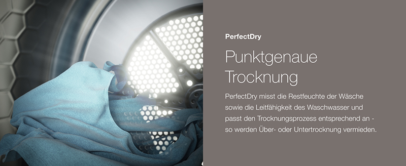 - PerfectDry: Tự động nhận biết độ cứng nước của khu vực bạn sinh sống và điều chỉnh thời gian sấy khô phù hợp, giúp quần áo được sấy khô hoàn hảo mà không bị quá khô hoặc quá ướt.
