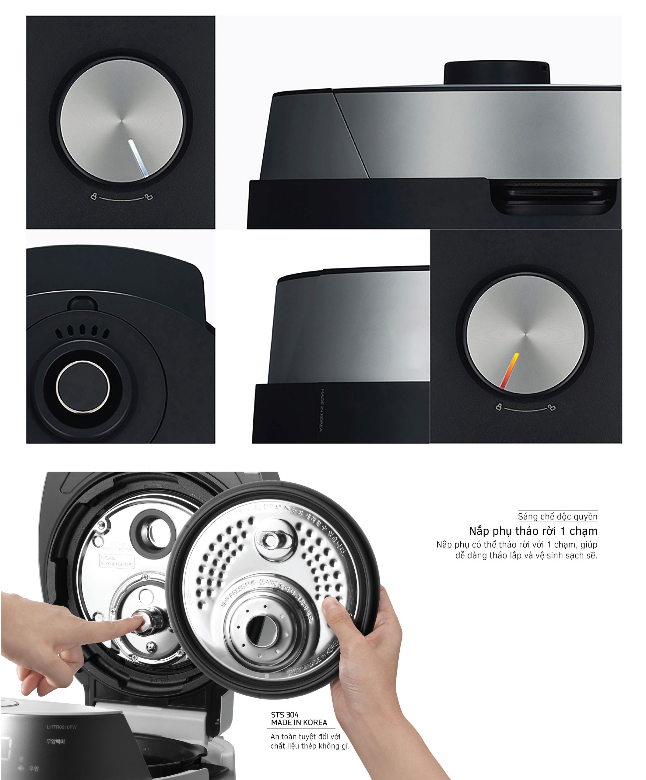 + Đa dạng chức năng nấu: Có thể nấu cơm, nấu nhanh, nấu cơm trộn, nấu ngũ cốc nấu cơm làm kimbap, nấu cơm dinh dưỡng, nấu cơm gạo lứt, nấu xôi, nấu cháo dinh dưỡng, cháo hầm xương và rất nhiều món cần hiệu quả áp suất cao.
