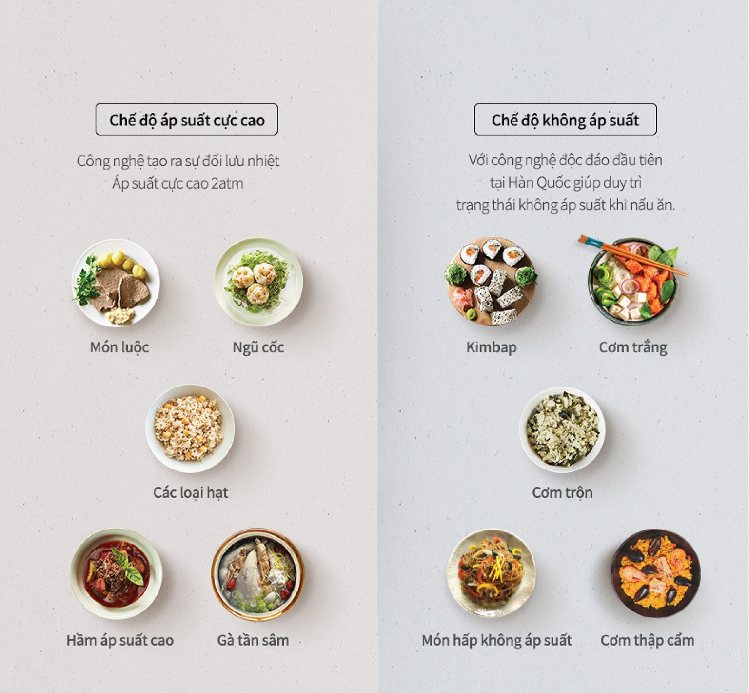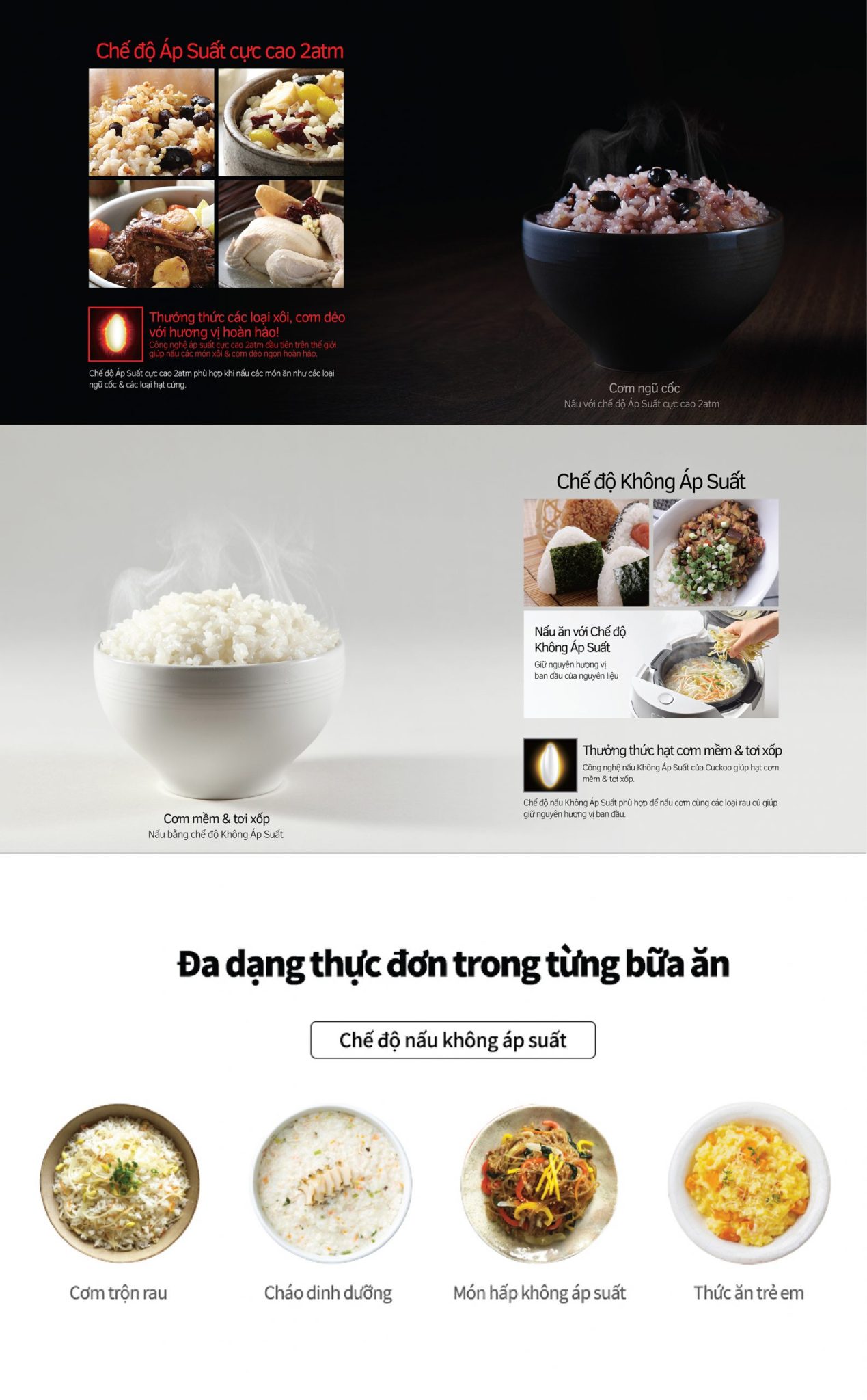– Nấu cơm, nấu nhanh, nấu cơm trộn,nấu ngũ cốc nấu cơm làm kimbap, nấu cơm dinh dưỡng, nấu cơm gạo lứt, nấu xôi …