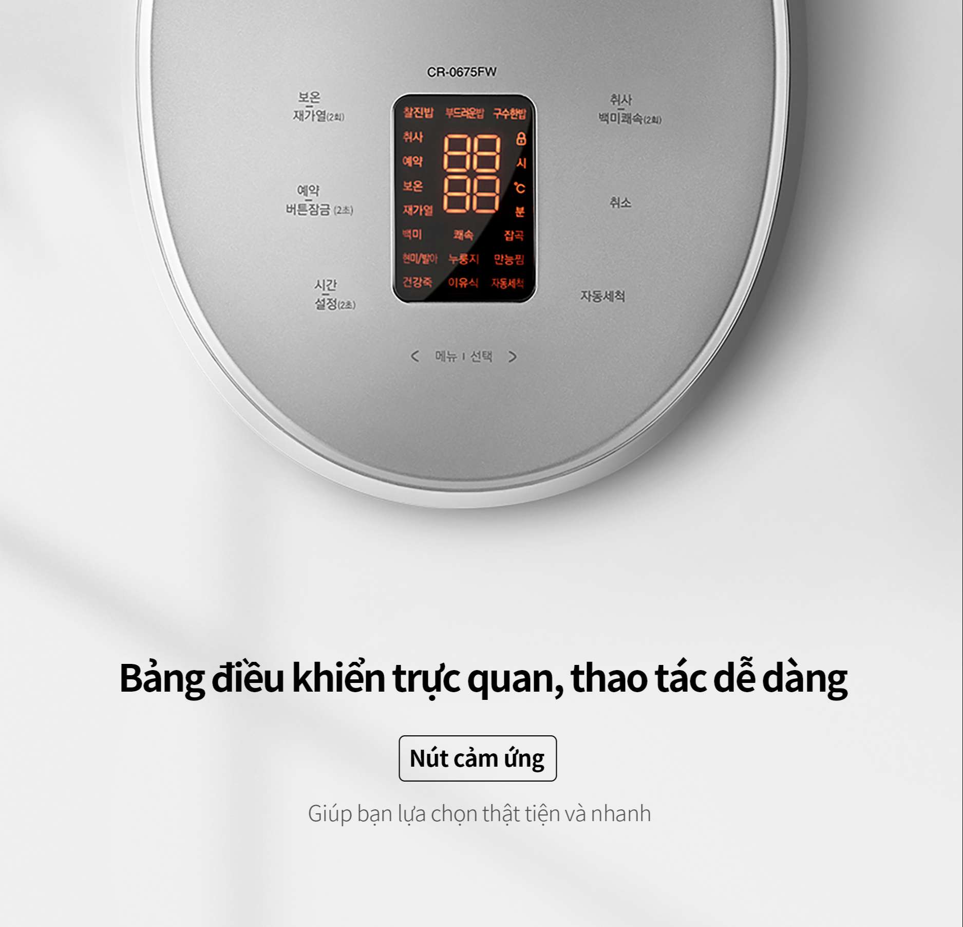 – Với thiết kế nhỏ gọn, thanh lịch, nồi cơm điện Cuckoo CR-0675FW phù hợp với nhiều không gian bếp, làm nổi bật không gian nhà bếp của bạn.