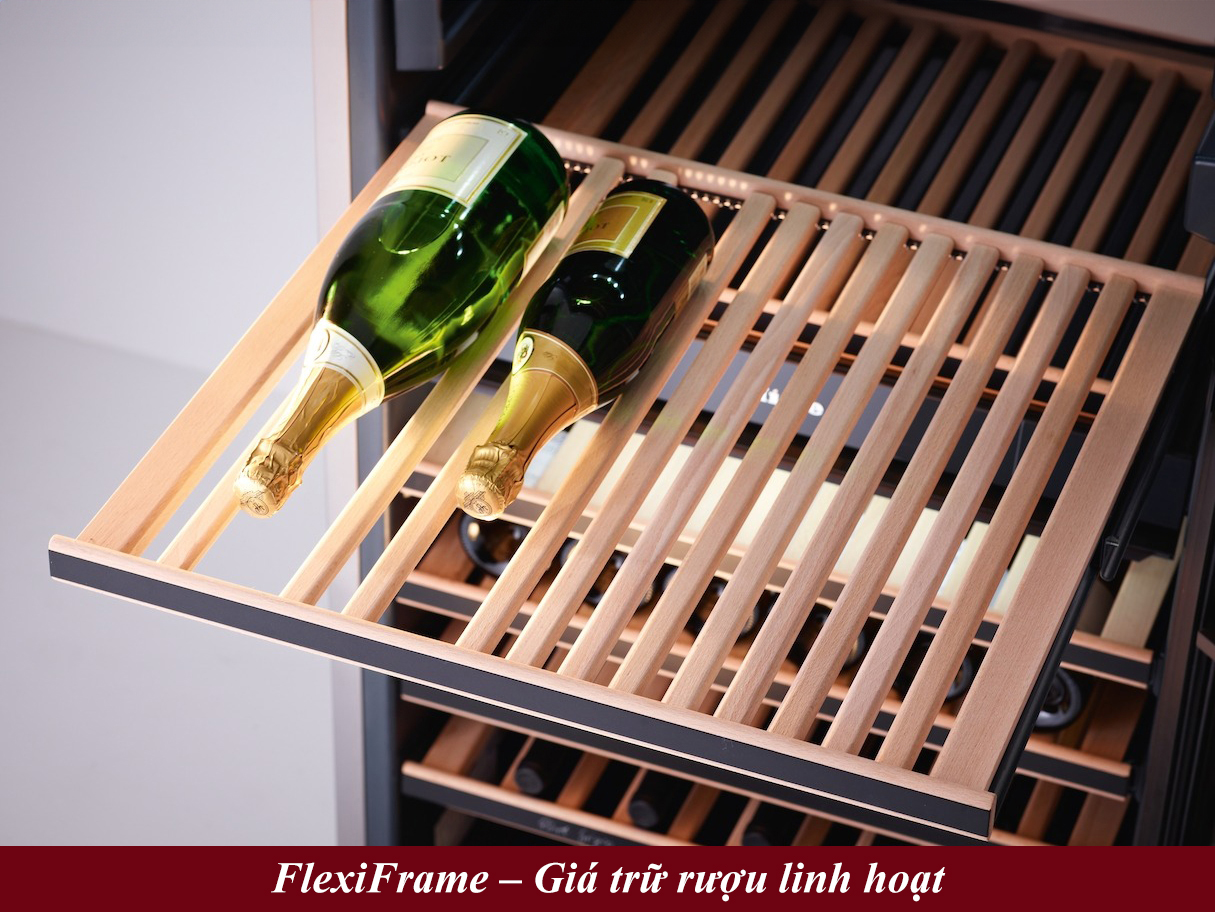 - FlexiFrame Plus: Hệ thống giá đỡ linh hoạt, có thể điều chỉnh để phù hợp với mọi kích cỡ chai rượu, kể cả chai magnum.