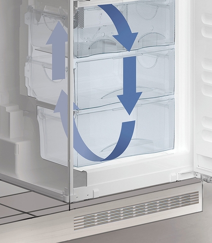 Công nghệ NoFrost tiên tiến của Liebherr giúp lưu thông không khí lạnh đều khắp ngăn đông, ngăn ngừa hiện tượng đóng tuyết bên trong tủ. Nhờ đó, bạn không còn phải mất thời gian rã đông tủ và thực phẩm luôn được bảo quản ở nhiệt độ ổn định nhất.